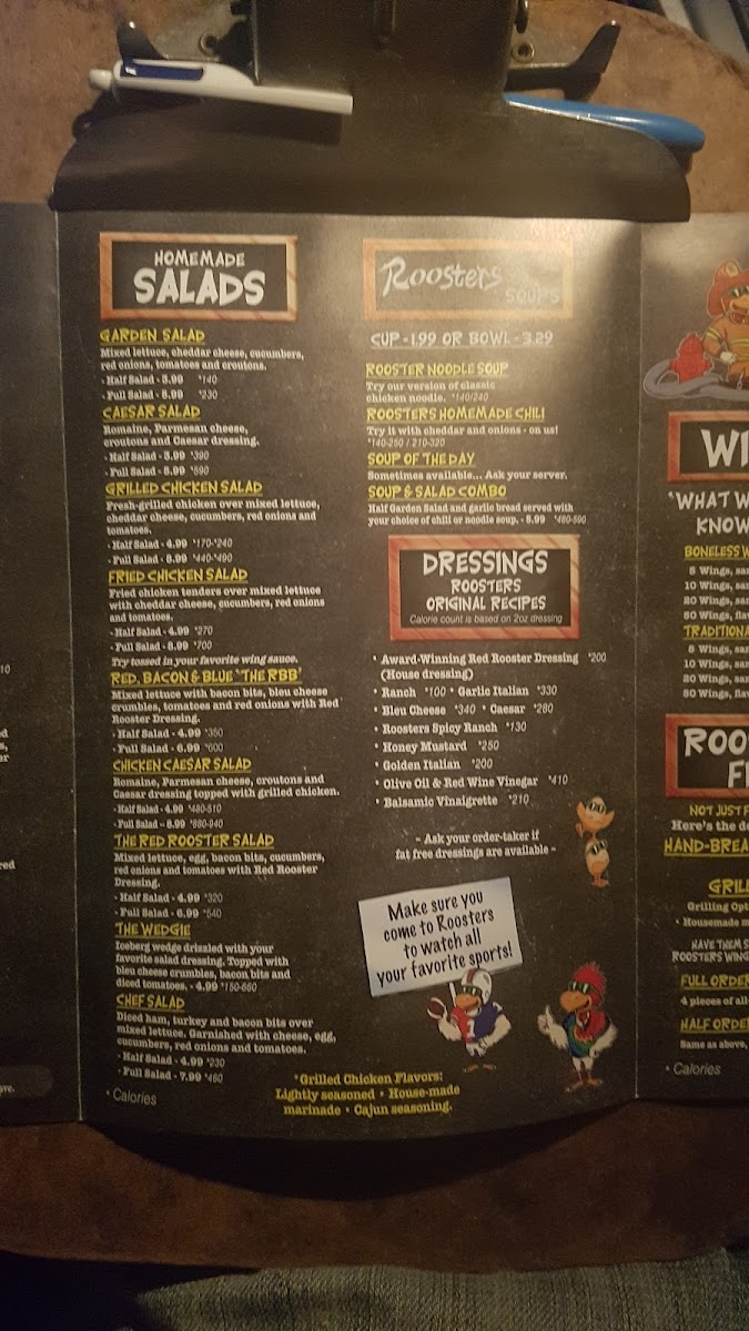 2 grilled all-white-meat chicken fingers with Cajun seasoning. Have them shaken in your favorite Roosters wing sauce or get it on the side.